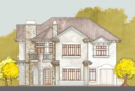 4,480 SF (5,290 Total) 4-Bed, 5.5-Bath, 2-car detached Garage, 2-Story, American, Urban, Adobe, Desert, Country Style, concrete CMU block construction, home, house, Wet Bar and Butler's Pantry, Study, Den, Living Room, Dining Room, Kitchen, Media Room, Loft, covered Entry and covered Terrace with a Private Balcony, w/ En-Suite Baths, 3-Fireplaces, size: 47’x64’.